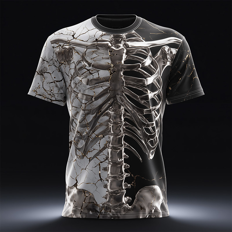 Men's Optical Illusion 3D Bone Skeleton T Shirt Short Sleeve T shirt 3D Print Crew Neck Shirt Exaggerated Designer Gothic Party Daily Holiday Silver Dark Gray Gray Summer Spring All Seasons Clothing