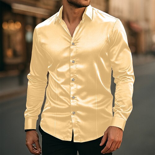 Per uomo Camicia Come la seta Camicia in raso Camicia elegante Camicia casual Camicia con Bottoni Semplice Performance Abbigliamento da Festa Nero Bianco Giallo Rosso Manica Lunga Bavero Primavera