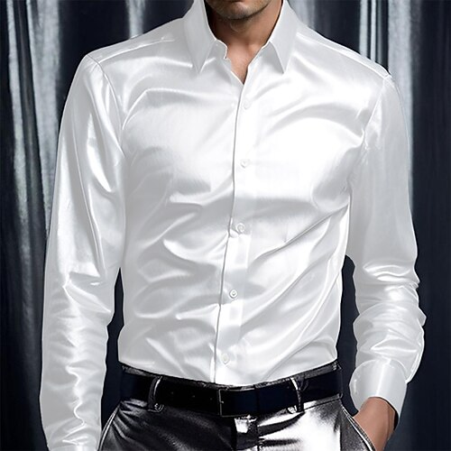 Per uomo Camicia Come la seta Camicia in raso Camicia elegante Camicia con Bottoni Semplice Formale Matrimonio Bianco rosso Bianco Verde Bianco nero Bianco blu Manica Lunga Bavero Primavera