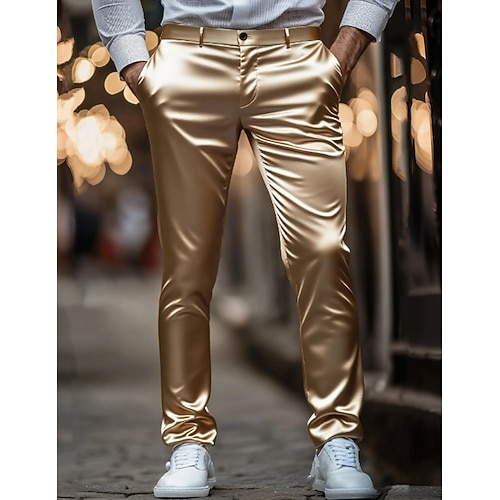 Per uomo Aderente Pantaloni Pantaloni Eleganti Come la seta Pantaloni in raso Tasca Semplice Traspirante Lunghezza intera Formale Feste Club Moda Streetwear Bianco Oro Inelastico