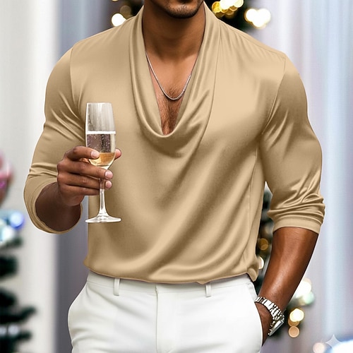 Per uomo Camicia Come la seta Camicia in raso Camicia casual Semplice Formale Matrimonio Nero Vino Blu marino Oro Manica Lunga Scollo a Cascata Primavera Autunno Tutte le stagioni Abbigliamento