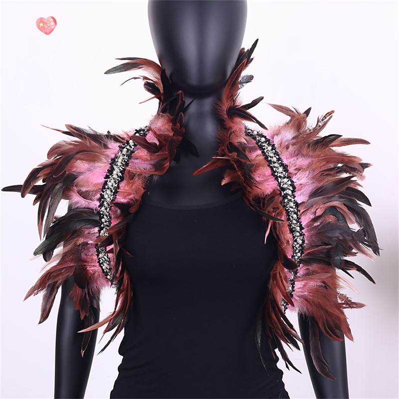 Carnival 2026Rio Carnival Samba Accessories Women's Red Feather Epaulettes with Rhinestone Trim Brazil Festival Performance Costume