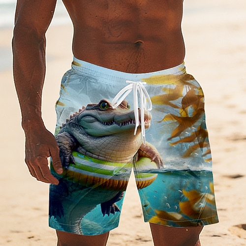 Per uomo Animale Cartoni animati Coccodrillo Costumi da bagno Pantaloncini da mare Pantaloncini da Surf Misura del girovita medio Divertente Camicia hawaiana Vacanza al Mare Tasche Laterali fodera in