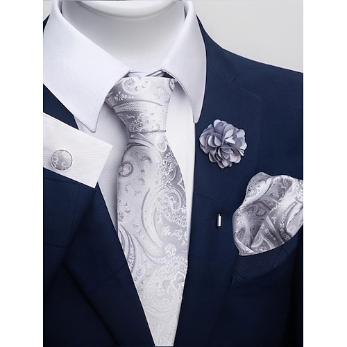 set di cravatte da uomo paisley floreale jacquard cravatta da taschino 3 pezzi gilet retro vintage rococò per abito o smoking festa di nozze mascherata