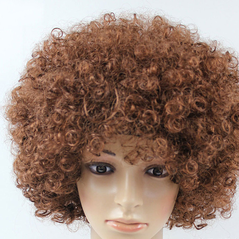 Carnival Wig Brown Curly Afro Short Synthetic Festival Wig Mardi Gras Parade Cosplay Costume Hair for Men