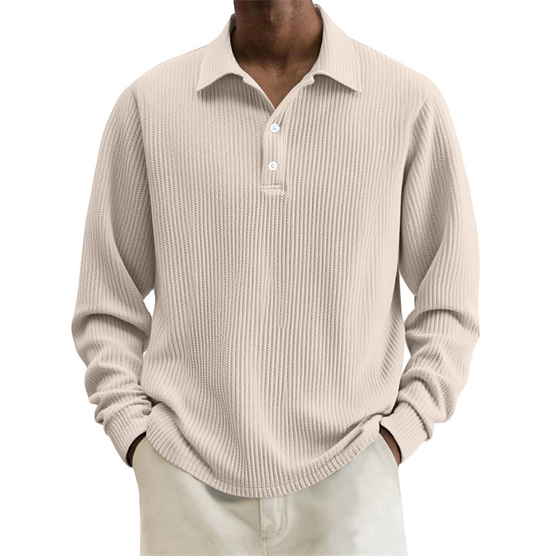 Men's Waffle Polo Shirts Golf Shirt Work Casual Lapel Long Sleeve Basic Modern Plain Buttons Spring Fall Regular Fit Blue Deep Green Wine Black White Light Green Waffle Polo Shirts
