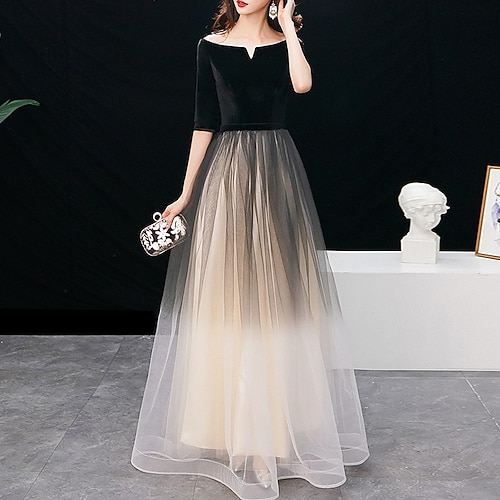 Abito A-Line da sera abito elegante per ospiti di matrimonio prom lungo fino al pavimento maniche a metà scollatura a gioiello tulle con taglio elegante
