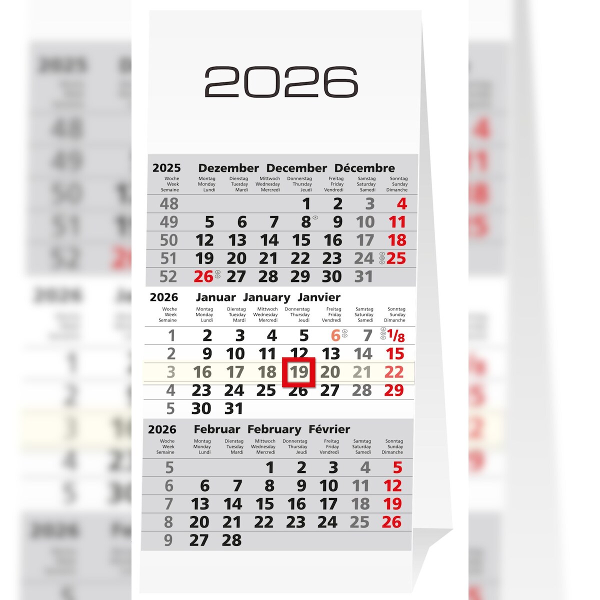 2026 Güss Drei-Monats-Tischaufstellkalender