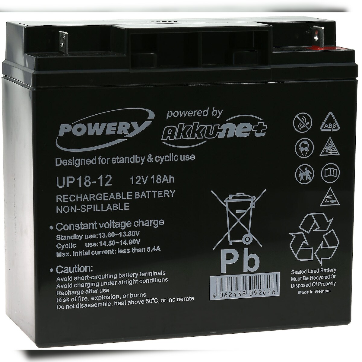 Powery Blei-Gel Akku 12V 18Ah