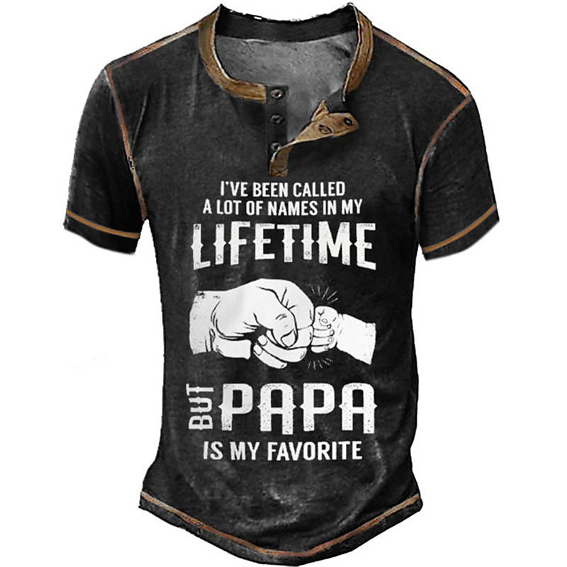 Men's Short Sleeve Henley Graphic Tee Papa Is My Favorite Dad Gift