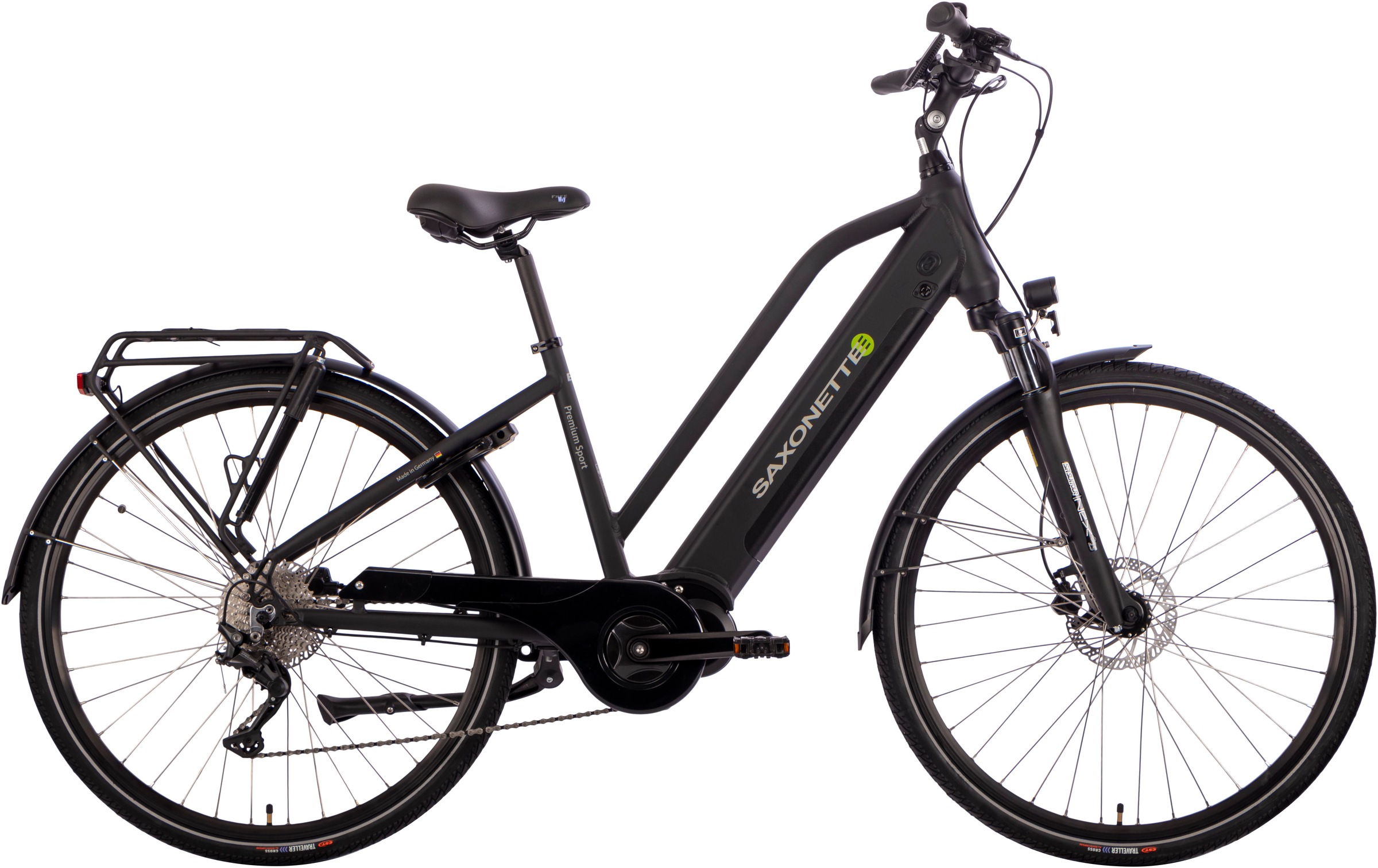 E-Bike SAXONETTE "Premium Sport (Trapez)" Gr. 45, schwarz (schwarz, schwarz), Elektrofahrräder, 45cm, 28 Zoll (71,12cm), Pedelec, Elektrofahrrad für Damen