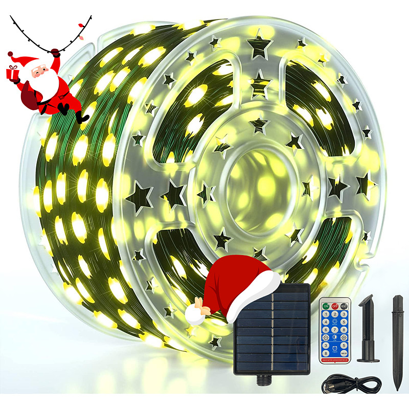 Outdoor solar IP65 waterproof tree decoration light Fairy String Lights Green PVC Copper Wire Lights 8 function timed remote control Courtyard balcony fence Festival wedding party atmosphere