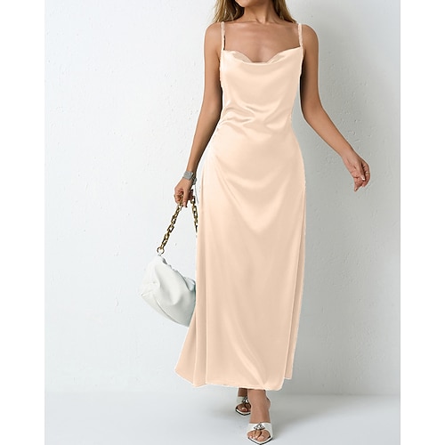 Per donna Abito Midi Abito in Raso Vestito da Festa Abito da Cocktail Abito Sottoveste Elegante Moderno Festa serale Feste Occasione speciale Vestibilità regolare Semplice Senza Maniche Spalline Nero