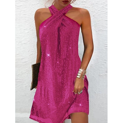 San Valentino Per donna Mini Abito Vestito all'americana Abito a spalle scoperte Elegante Festa cocktail All'aperto Feste Ospite di nozze Vestibilità regolare Tinta unica Senza Maniche All'americana