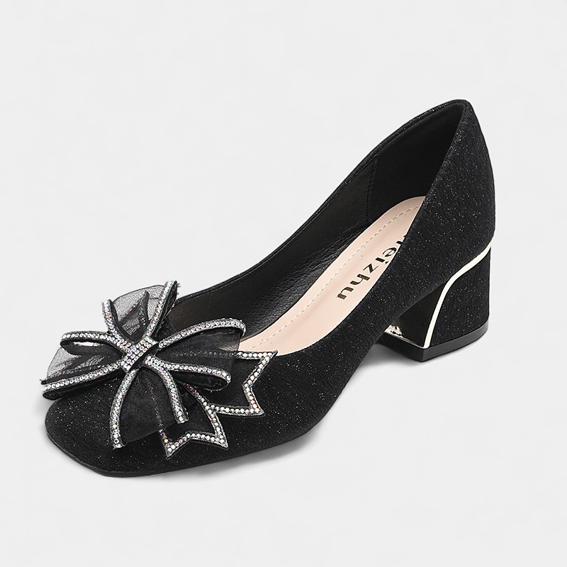Champagne Gold Mid Heel Wedding Shoes for Mother of the Bride – Elegant Block Heel Pumps with Bow Detail