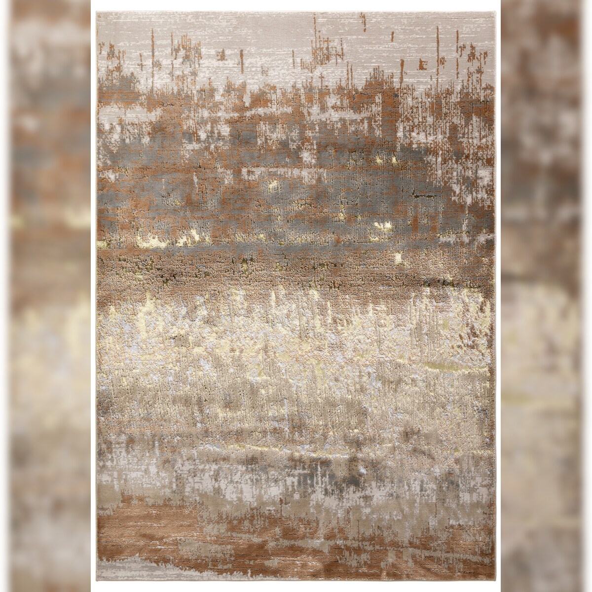 Teppich Hochglanz Metallic Abstrakt | 120x170cm, Florhöhe 8mm, Gesamthöhe 13mm | Gold, Champagner, Bronze | Pflegeleicht | Kadima Design