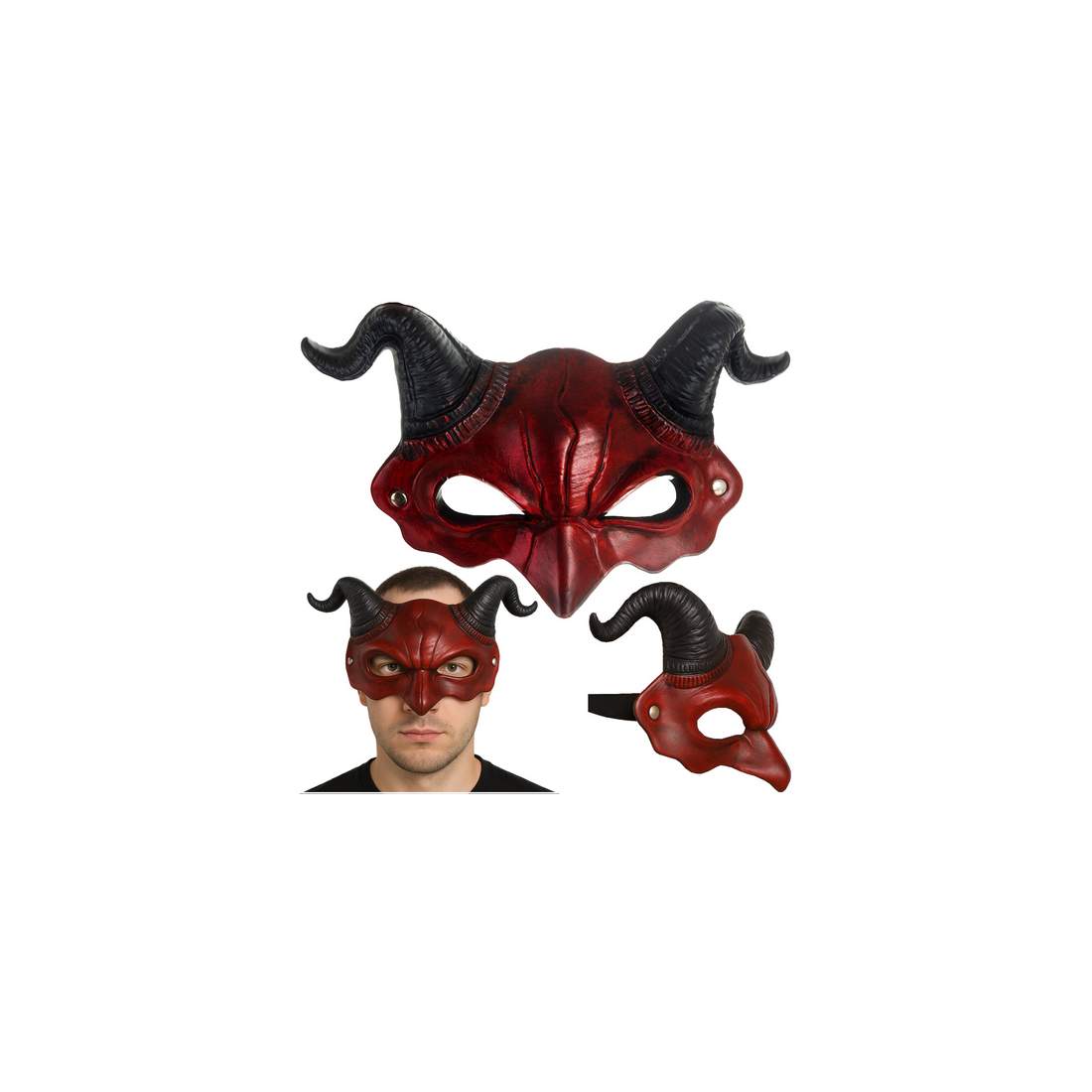 Djævle Halloween-maske med horn, rød og sort, letvægts