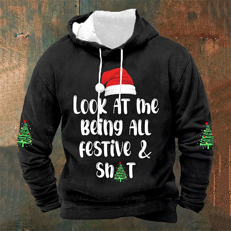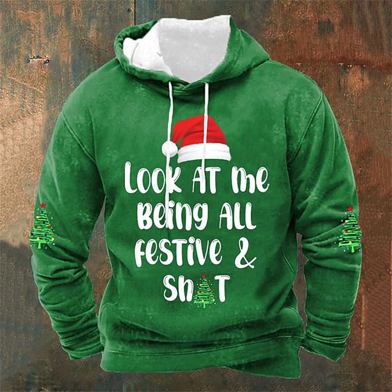 Christmas Men's Graphic Christmas Tree Hat Hoodie Printed Hoodie Hooded sweatshirt Fashion Streetwear Holiday Casual Vintage Retro Hooded Going out Festival Black Red Green Gray 3D Print Spring Fall