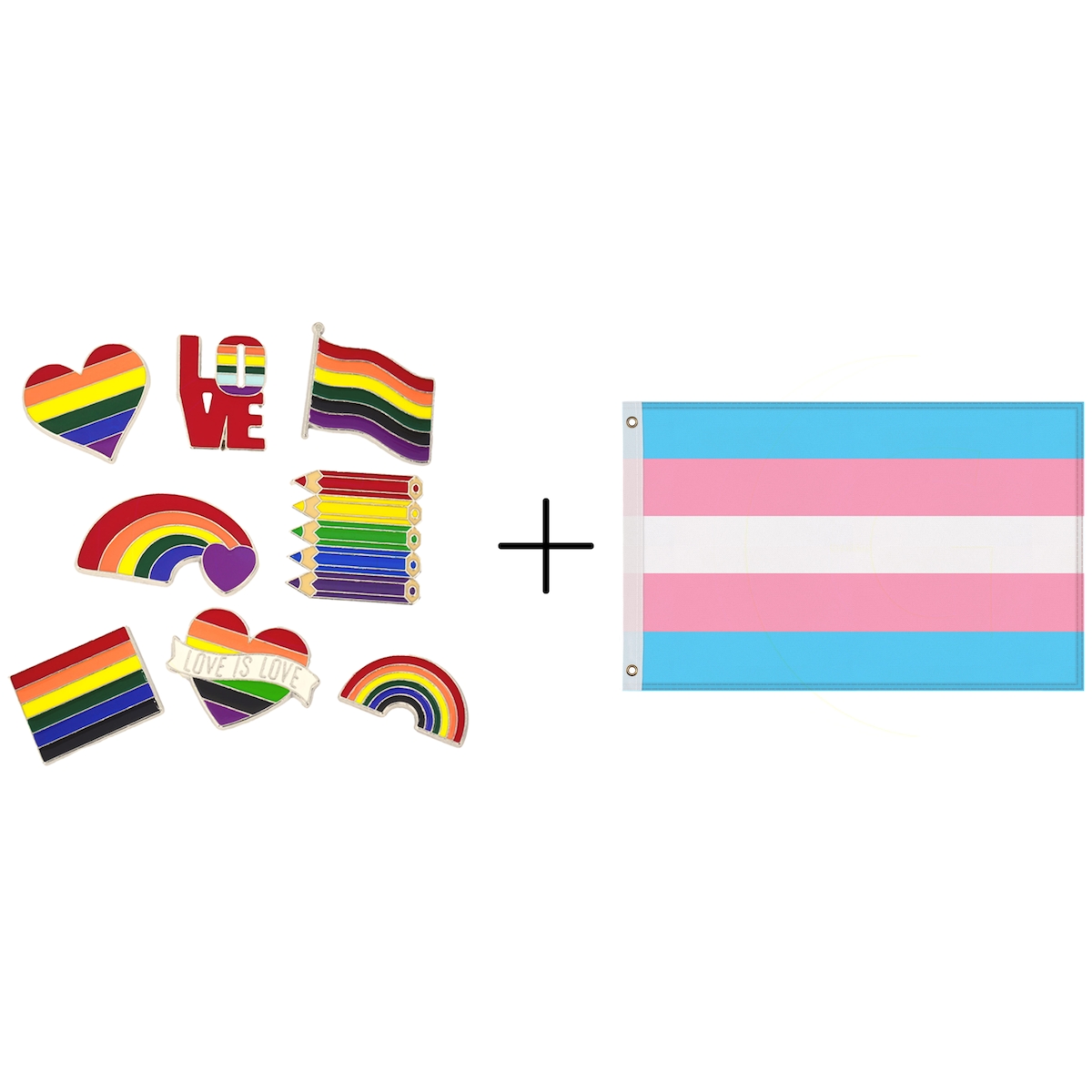 Gravidus Set 1 Flagge + 8 Anstecker 150x90 cm, Pride Anstecker Set mit Symbolen