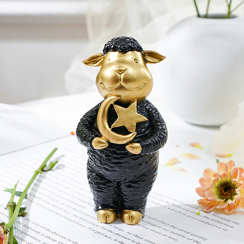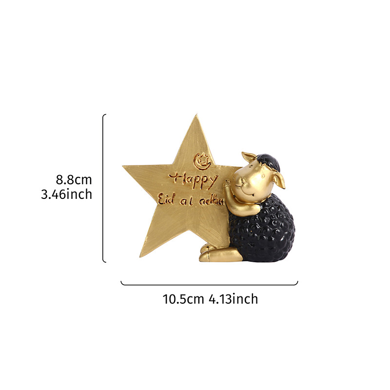 Ramadan Cute Lamb Holding Star Resin Figurine, Islamic Home Decor for Eid al-Fitr and Eid al-Adha, Tabletop Ornament for Festival Party Decoration, Sweet Gift