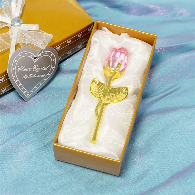 Crystal Glass Rose Flower Figurines Craft Valentine's Day Favors X'mas Lovers' Gift Souvenir Home Wedding Decoration