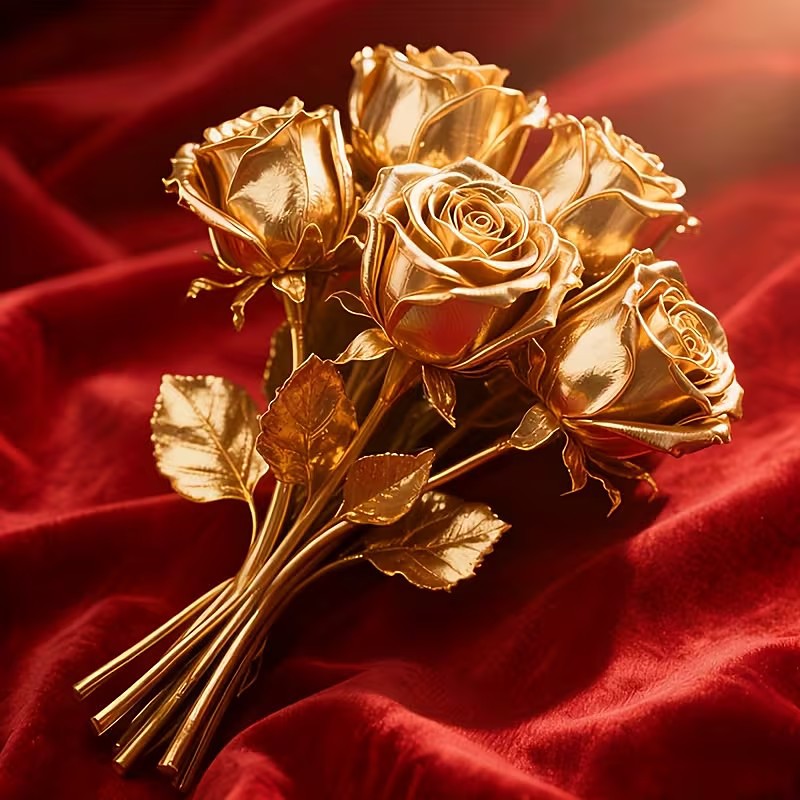 6PCS Valentine's Day Gold Rose Artificial Flowers – Realistic Faux Rose Bouquet for Home Decor, Office, Living Room, Parties, Birthday Gifts, Mother's Day, Thanksgiving