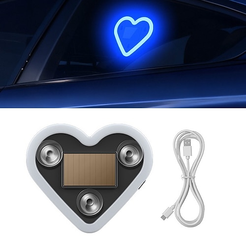 LED-Innenraumbeleuchtung fürs Auto, herzförmige Ambientebeleuchtung für die Fenster, 5 Beleuchtungsmodi, Aufladung über USB-C und Solarenergie, Autodekoration für Frauen und Männer