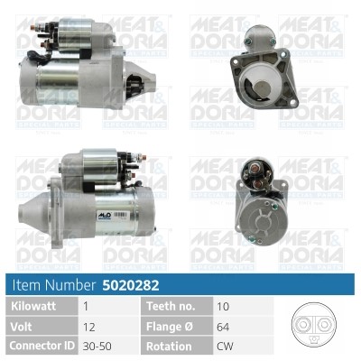 Käynnistin 12V Meat & doria 5020282 - fiat 500, bravo ii, grande punto, idea, panda, punto evo, lancia musa, ypsilon - OE 51817370, 51832951, 51890632
