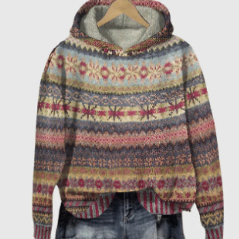 Women's Christmas Sweater Fair Isle Sweater Sweater Fair Isle Sweater Streetwear Casual Floral Hooded Knitted Print Long Sleeve Regular Tops Knit Outdoor Daily Holiday Brown Fall Winter