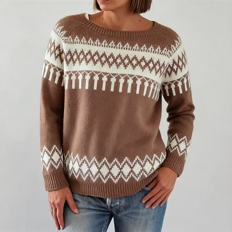 Damen Weihnachtspullover Fair Isle Pullover Pullover Fair Isle Sweater Mode Streetwear Lässig Geometrisch Rundhalsausschnitt Gestrickt Druck Langarm Normale Oberteile Stricken Täglich Ferien Ausgehen