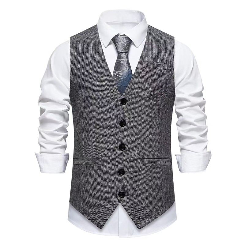 Men's Tweed Vest Waistcoat Formal Wedding Vacation Daily Vintage Fashion Spring Fall Pocket Buttons Polyester Comfortable Herringbone Single Breasted V Neck Lapel Slim Fit Brown Light Grey Dark Gray
