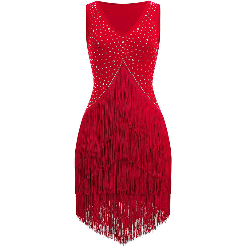 Latin Dance Dress Crystal / Rhinestone Tassel Pure Color Women's Performance Party Sleeveless Spandex