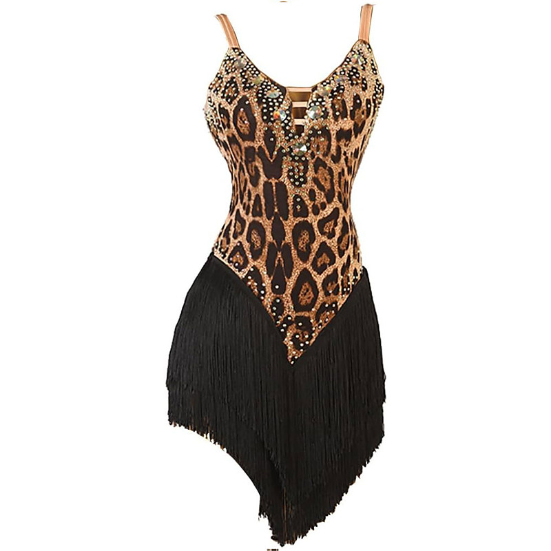 Dance Salsa Latin Dance Dress Leopard Print Ruffles Women's Training Sleeveless High Spandex