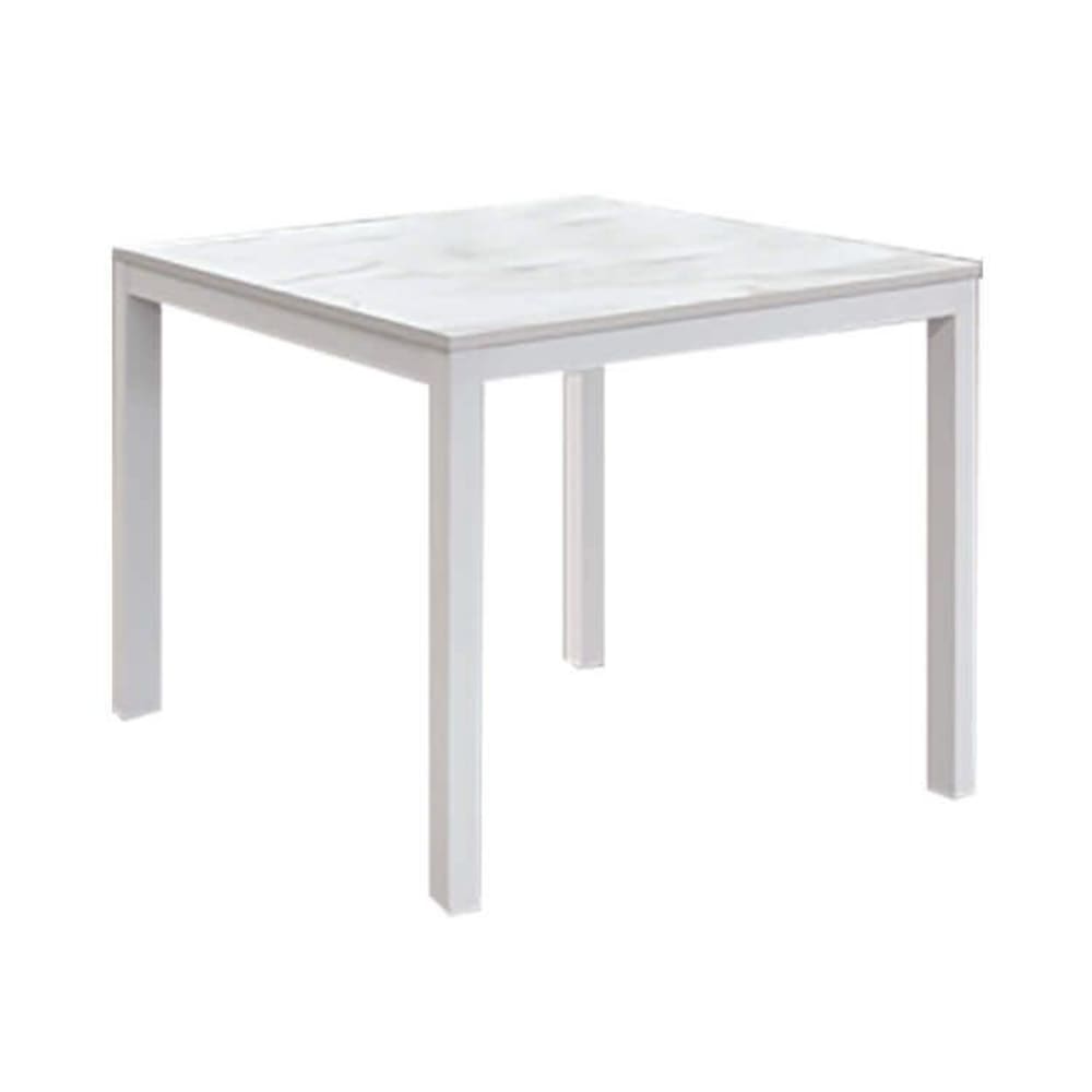 Tavolino in fibra di vetro effetto legno noce e marmo con cassetti