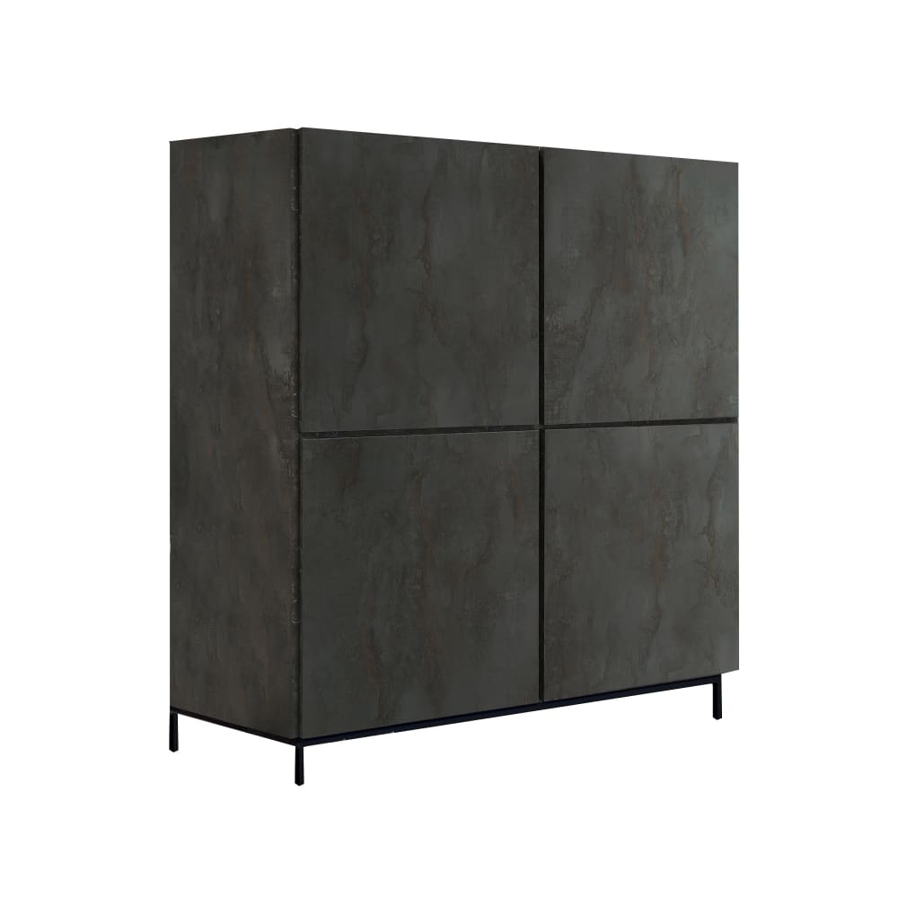 Credenza legno, finitura acciaio ossidato, piano effetto marmo, 136x50