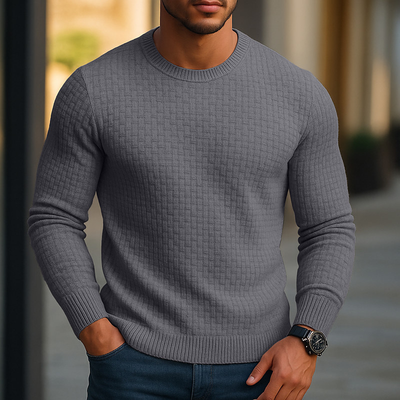 Men's Sweater Pullover Sweater Jumper Waffle Knit Cropped Knitted Solid Color Crew Neck Stylish Basic Outdoor Daily Clothing Apparel Fall Winter Navy Blue Blue S M L