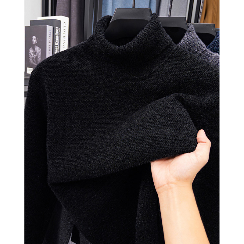 Men's Pullover Sweater Jumper Fleece Sweater Knit Sweater Ribbed Knit Regular Tops Knitted Plain Turtleneck Fashion Basic Vacation Daily Wear Clothing Apparel Fall Winter Black Navy Blue M L XL