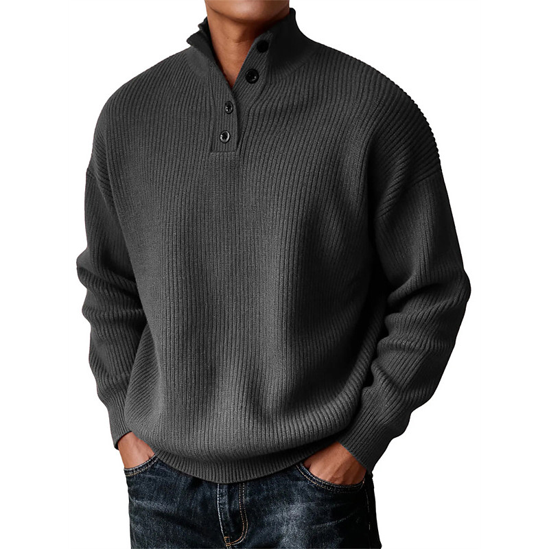 Men's Sweater Knit Sweater Knitted Pullover Ribbed Knit Regular Tops Buttons Knitted Plain Stand Collar Fashion Streetwear Casual Daily Wear Clothing Apparel Fall Winter Blue Black S M L