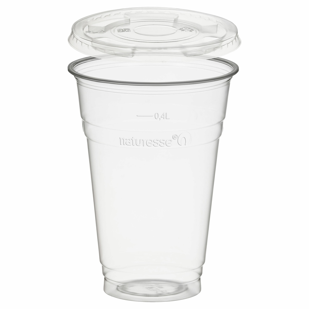 VEPATIM 50x BIO Trinkbecher 400ml + Deckel flach ohne Loch aus Biokunststoff (PLA)