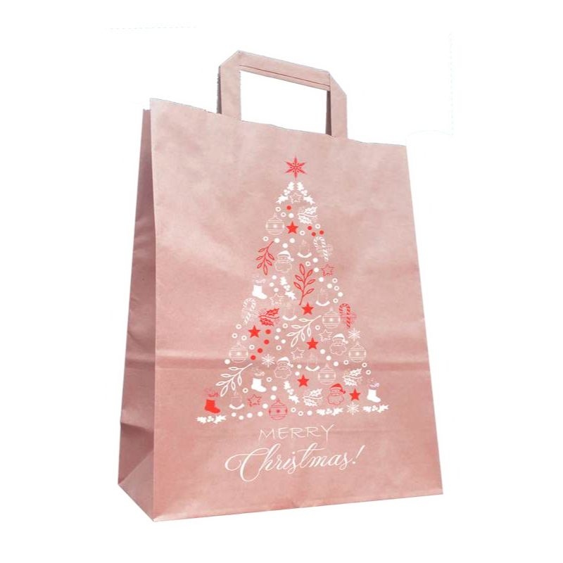 250x Papiertragetaschen 26 + 12 x 35 cm 80 g/m2 weihnachtliches Motiv "Merry Christmas"