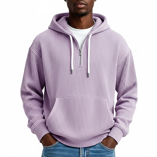 Per uomo Felpa con cappuccio Velluto a coste Maglione Felpa con cappuccio e zip corta Aalbicocca Bianco Viola Verde Grigio chiaro Con Cappuccio Semplice Tasca a marsupio Testurizzato Casuale