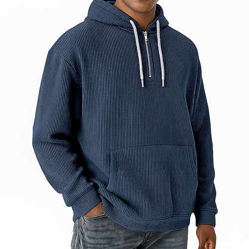 Per uomo Felpa con cappuccio Velluto a coste Maglione Felpa con cappuccio e zip corta Aalbicocca Rosso bordeaux Nero Bianco Blu marino Con Cappuccio Semplice Tasca a marsupio Testurizzato Casuale