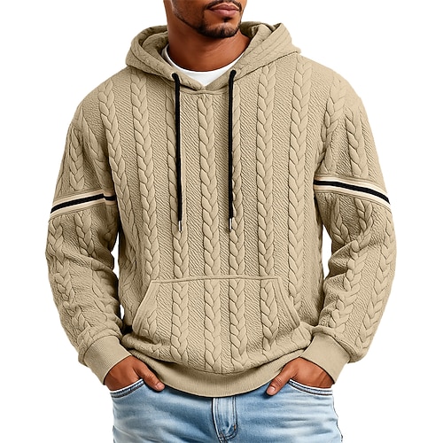 Per uomo Jacquard Felpa con cappuccio Nero Bianco Blu marino Cachi Grigio Con Cappuccio Semplice Patchwork Tasca a marsupio Testurizzato Casuale Quotidiano Sport Outdoor Streetwear Cool