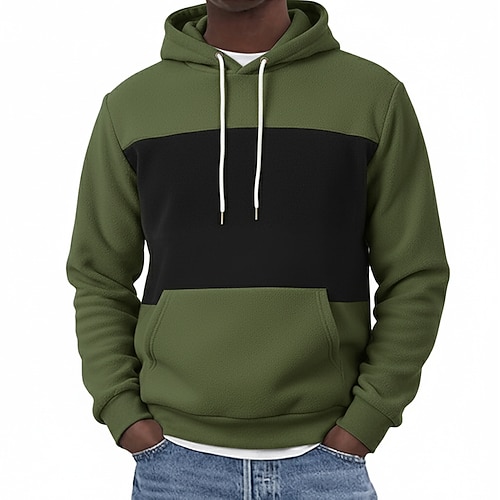 Per uomo Felpa con cappuccio Felpa con cappuccio in pile Felpa con cappuccio foderata in pile Blu Aalbicocca Nero Bianco Giallo Con Cappuccio Semplice Tasca a marsupio Casuale Quotidiano Sport