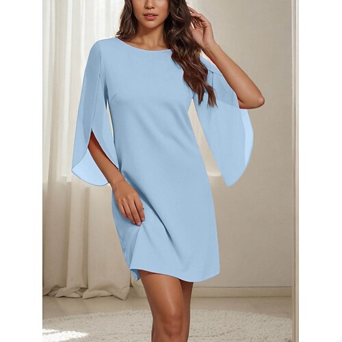 Per donna Mini Abito Abito a trapezio Casual Quotidiano Vestibilità regolare Semplice Manica 3/4 Girocollo Nero Rosa Blu Verde Estate Primavera