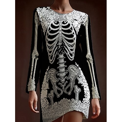 Per donna Mini Abito Abito in maglia Vacanza Casual Boho Quotidiano Ferie Uscire Taglia piccola Grafico Manica Lunga Girocollo Nero Viola Arancione Verde Autunno Inverno