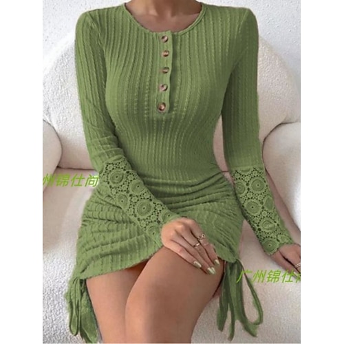 Per donna Abito chemisier Mini abito Bottoni Informale Colletto Manica lunga Nero Blu Verde Colore