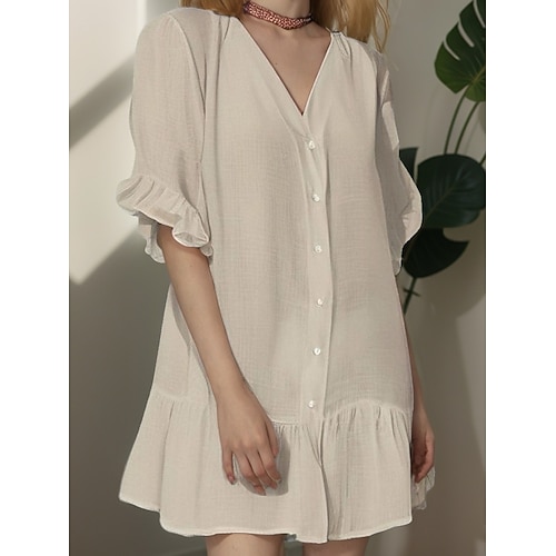 Per donna Mini Abito Abito Bianco Abito da Spiaggia Vestito Casual Copricostume Moda Moderno All'aperto Vacanza Uscire Vestibilità comoda Semplice Manica Corta Scollo a V Nero Bianco Cachi Estate