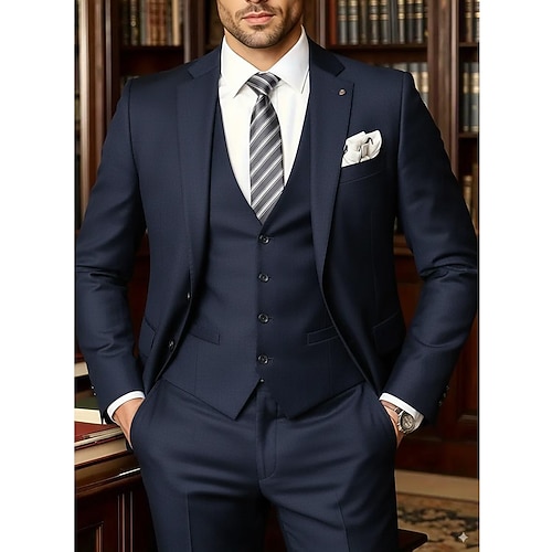 Uomo Matrimonio Feste Abiti da lavoro Bavero classico Nero Borgogna Quotidiano Formale Tinta unita Vestibilità aderente 3 pezzi Monopetto Due Bottoni