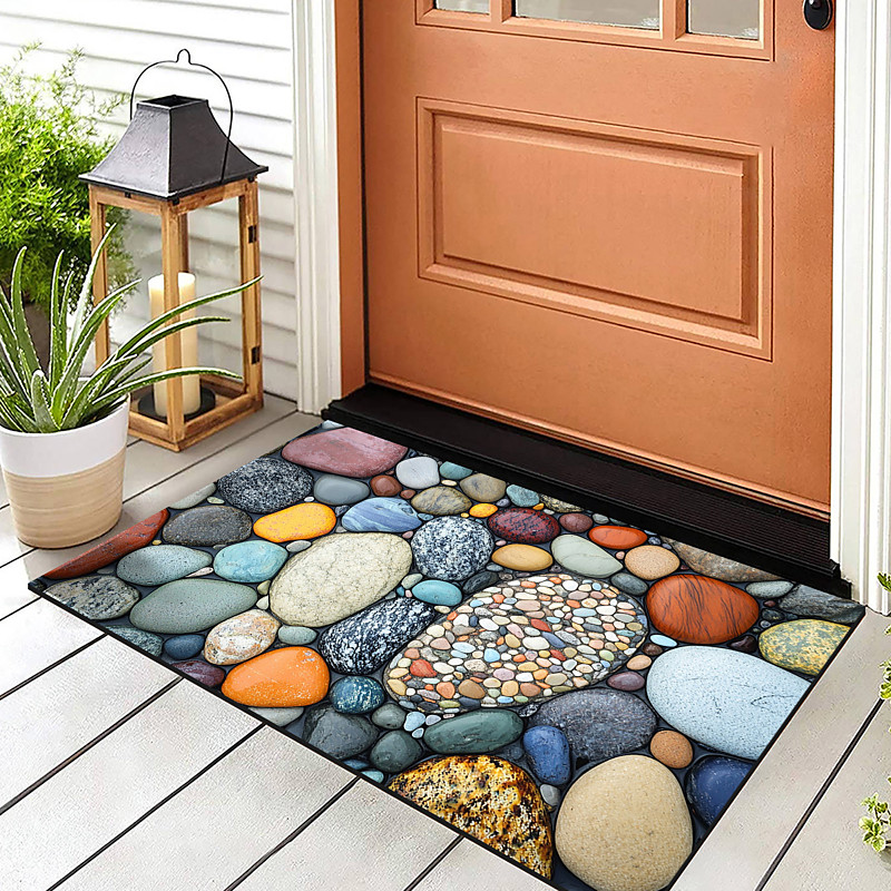 Cobblestone Pattern Doormat Kitchen Mat Floor Mat Non-Slip Area Rug Oil Proof Rug Indoor Outdoor Mat Bedroom Decor Bathroom Mat Entrance Rug